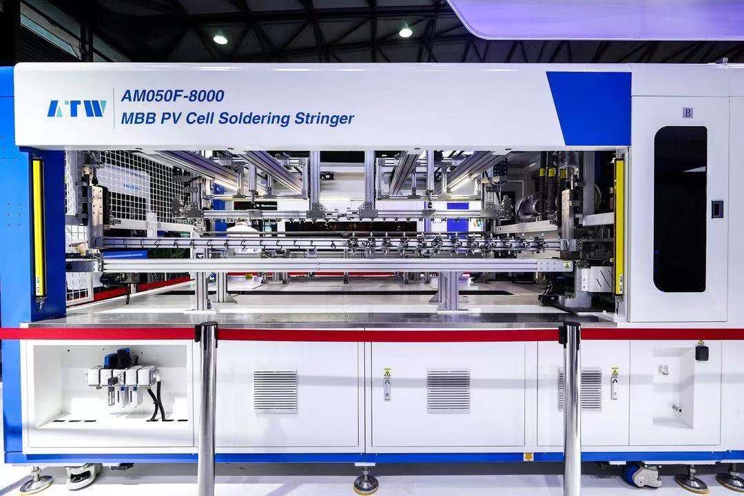 随着降本增效的行业大趋势,大尺寸电池片、片间距多规格化、焊带多样化、材料搭配多元化以及HJT、TopCon等新兴技术的不断涌现,光伏产业的技术迭代也正在加速演绎。目前,多种组件封装技术并存的市场现状,对组件核心设备的综合技术要求也越来越高。402cc永利登录主页组件封装高速互联方案均可以兼容156-230mm全系列电池尺寸,适配多种组件工艺。 作为行业有代表性的串焊机生产厂家,402cc永利登录主页在此届展会上推出高速大尺寸串焊机AM050E-8000,设备刚性实现整体提升,节点节拍得到稳步优化,整机产能高达7200片/小时。AM050E-8000也可增配有水/无水无损切割模块,升级为划焊联体机AM050F-8000,为广大客户提供更多选择。配合智能检测模块,将进一步推动光伏组件生产线的无人/少人化进程。