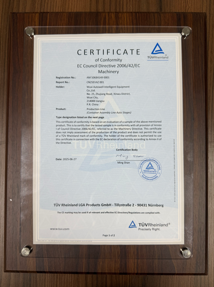 近日,无锡402cc永利登录主页智能装备有限公司储能产线顺利通过TÜV莱茵审核,获得CE认证。402cc永利登录主页智能公司副总经理武光先生、海外销售副总监Tim Seong、TÜV莱茵大中华区产品事业群合规认证部经理海曼先生、TÜV莱茵大中华区太阳能与商业产品华东区域销售经理徐澍先生等双方代表出席认证仪式。